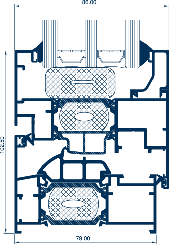 La serie Domo 79RT C16 Eco Thermic Plus está diseñada para responder ante las exigencias climáticas más severas gracias a su profundidad de marco de 79 mm y una rotura de puente térmico con poliamidas de 34 mm que poseen un coeficiente de conductividad térmica de 0,19 W/m²K, mejorando así hasta un 37% la capacidad aislante frente a perfiles convencionales. Además cuenta con la tecnología Thermic Plus tanto en el galce del vidrio como en el interior de marco y hoja, garantizando un excelente aislamiento de baja conductividad térmica.