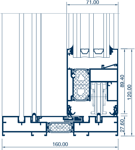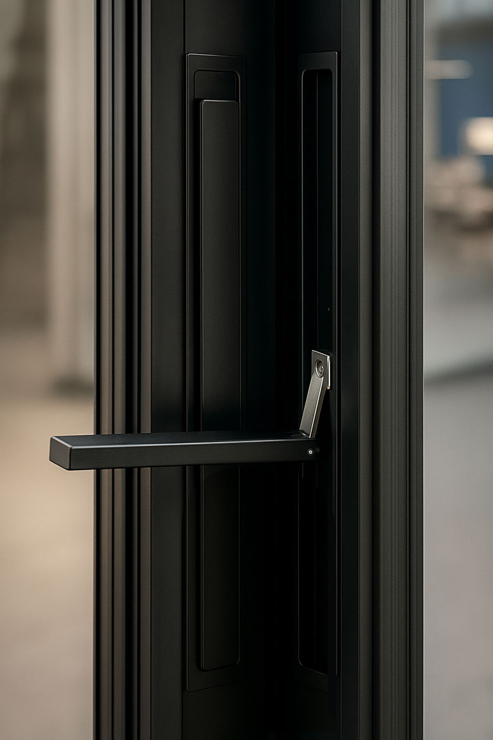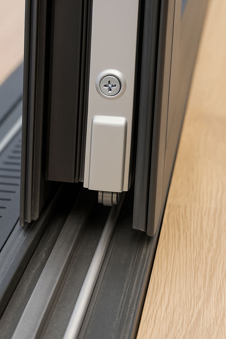 La DOMO 160RT también incorpora el sistema Silent Close, que asegura un cierre suave y controlado, sin golpes bruscos, mejorando tanto la experiencia de uso como la durabilidad del sistema. Además, su innovador sistema de estanqueidad evita filtraciones incluso en condiciones exigentes: la junta no se apoya sobre el marco, sino que actúa frontalmente al cierre, cerrando de forma firme gracias al mecanismo de la manilla. Se complementa con juntas EPDM perimetrales y un eficiente sistema de drenaje mediante una rejilla integrada entre los carriles.